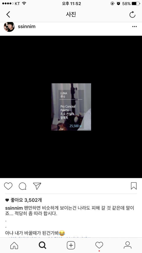 +)씬님이 인스타에 다시 사과문을 올렸더라고