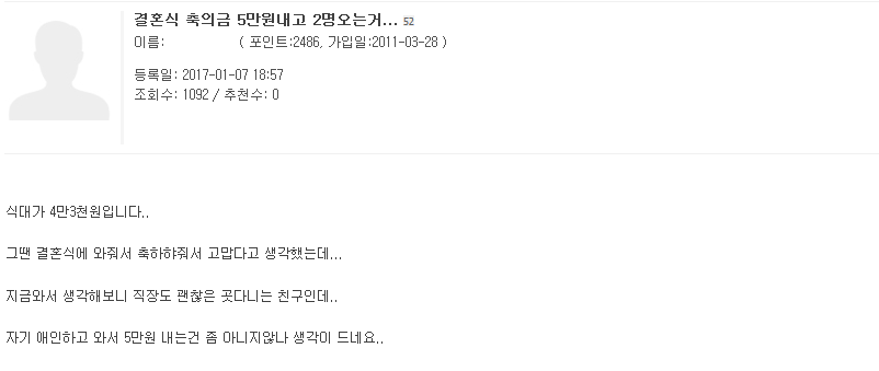 축의금 5만원에 몇명이 적당한지 논란