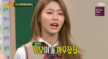 1. 설현의 애장품을 Aoa 멤버들이 자기 이름을 맞추면 상품으로 준다고 가져옴