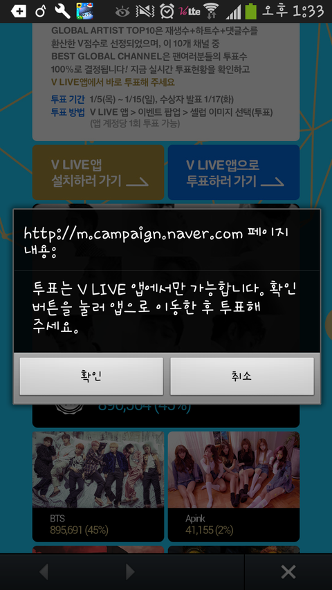 앱으로 이동해서 투표하라 해서 이동하면 또 이 창이 뜸