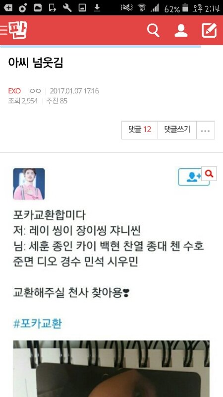 옆테이블 여자가 남친한테 아니 시우민사랑한다고 함