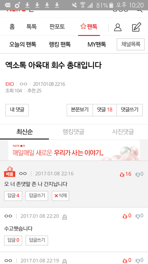 오늘의 팬톡