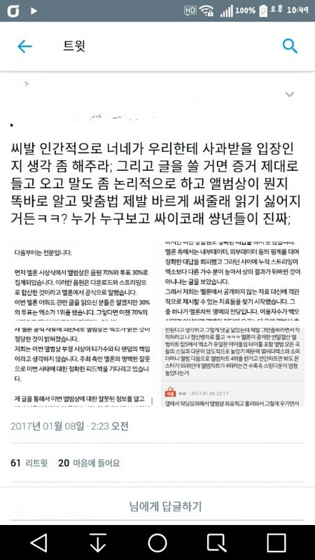 솔직히 제일 어이없었던게 마지막댓글이었음. ㅇㅅ이 멜론말을 안믿는건 그만큼 엑소가 앨범상이라는 확실한 근거들이 많기때문이고 제대로된 피드백ㅇㅣ 없기때문임. 지금껏 멜론 말이 얼마나 바뀐건지 알지 않을까? 모르면 최소 문☆찐?ㅋ...