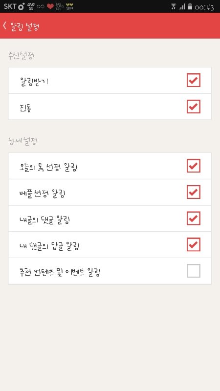 너네들은 알림 잘 와? 나 노트5인데 아래 사진처럼 설정도 잘되어있거든ㅜㅜ 폰하고있을때 내 글에 누가 댓글달면 작은 알림창으로 판앱의 알림이 숨겨졌대ㅠㅠㅠ 답답하다아~ 아는 토기들 있니?