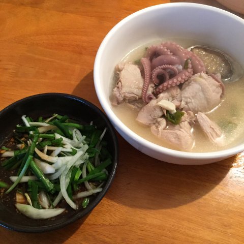 전복과 낙지 그리고 닭을 푹 끓여서 엄마랑 함께 먹었답니다.