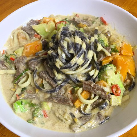 이사도 하고, 냉장고도 한번 싹 정리할겸 냉장고속 채소들 몽땅 꺼내 크림파스타를 해먹었어요. 면이 참 신기하죠!? 안토니오 마렐라에서 만든 파스타면이에요. 형형색색! 너무 예뻐서..해먹기 아깝지만..사온기념으로 한번 해보긴 해봤답니다!!!