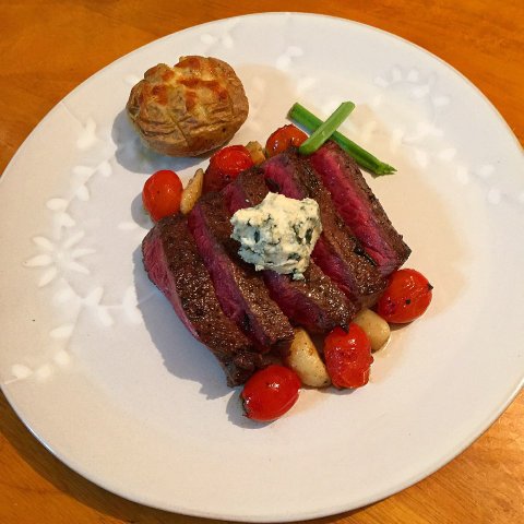 이건 꾸릿살을 이용한 스테이크 인데요! 사실 스테이크용으론 적합하지 않은 부위라 사실 조금 질기긴 했습니다. 그래도 뭐 나쁘지 않았어요! 열심히 굽고 블루치즈를 위에 올려서! 쓱! 발란스가 참 잘맞더라구요!!! 맛있게 잘먹었습니다.