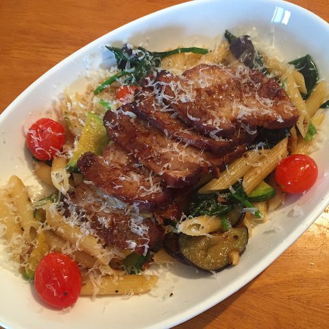 샘킴 빙의해서 만든 건강한오일파스타에요. 진주에 출장 갔다가 다양한 채소들을 가져왔는데,,그걸 몽땅 넣고 만든 오일파스타죠! 위에는 차슈차슈~ 차슈를 살짝 오븐에 구워 올려주었답니다. 꿀맛!