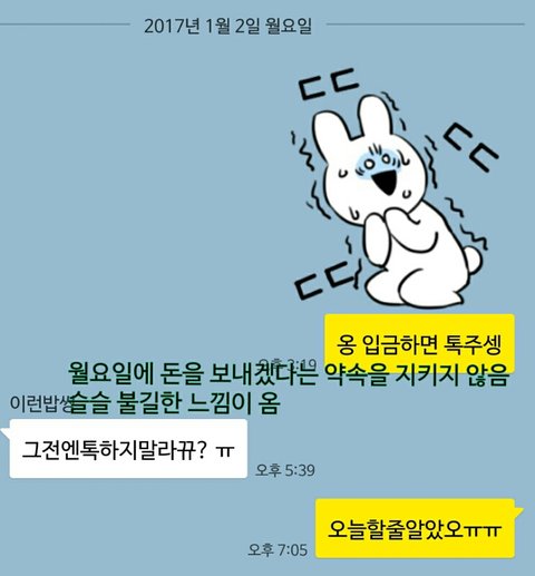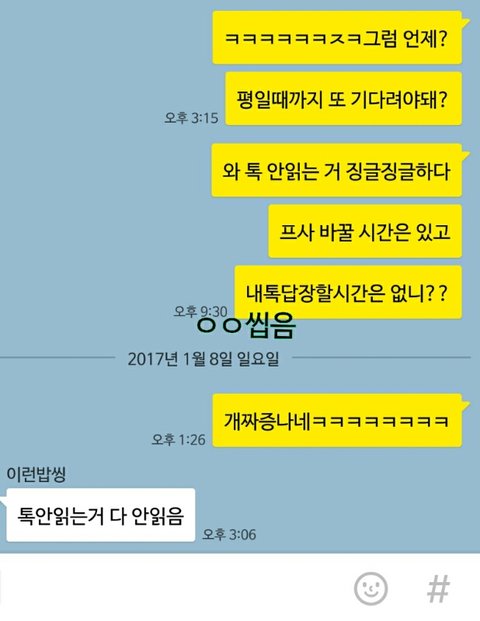 내 생일선물 사주겠다면서 저번주에 입금 약속한 4년 친구년이 이러고 있음 참고로 내 생일 10월이야 3개월 째 안주는 중 난 친구년 생일에 편지4장과 이만원을 썼단다