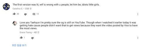해외팬들이 댓글 korean fans start being baby again/ where they(뮤비속 여자분들)go? idiot little fan girl being savege again / korean starlight don't be silly/korean fans jelous them(뮤비 여자분들).
