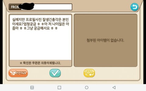 열심히 게임하다가 이웃한테 편지가 옴