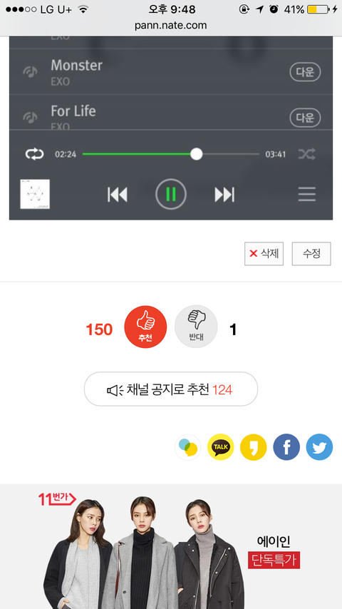 오늘 네2쳐 콘서트 3차 당첨된 거 너네 좋은 댓글 때문인 것 같고 괜히 뿌듯 너네도 다 덕계못 깨라!!!! 한동안 콘서트도 안 하고 경수 무인이 마지막으로 본 거였는데 행복하다 내일은 서가대 공지 올릴께 오늘 멜론 공지글 쓰는데 1시간 걸림 ㅎ 아 그리고 모두 투표하자!!!! 다들 퓨1즈!!!!