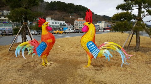 마음으로 닭 조형물들을 설치해 두었습니다.