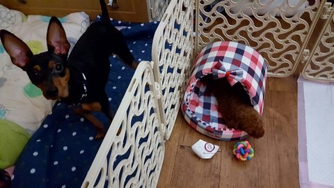 배변훈련시키려구 울타리안에다가 키웠었는데