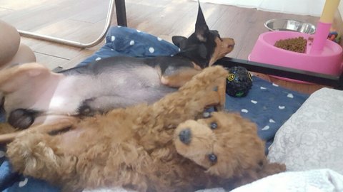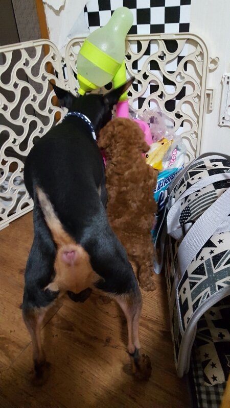 풀어놓은 후에 찍은건데 아직 애기가 간식먹을