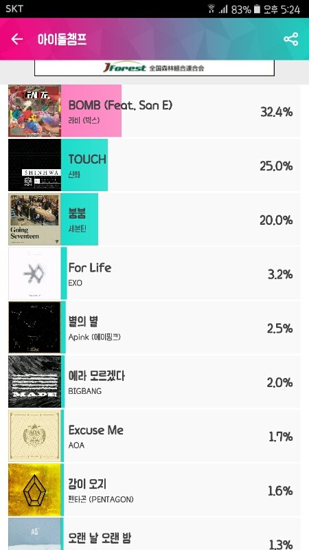 캐럿들 열툽하자!!! 한사람당 3번할수있으니까 3번 다 세븐틴 찍는 센스❤ 3위야!! 빨리 따라잡자ㅜ.ㅜ