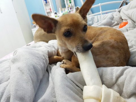 믹스견 아지(여) 2살추정. 4킬로. 사상충 감염으로 치료중.