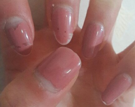 사진에 보이는 것 처럼 메니큐어가 벗겨짐