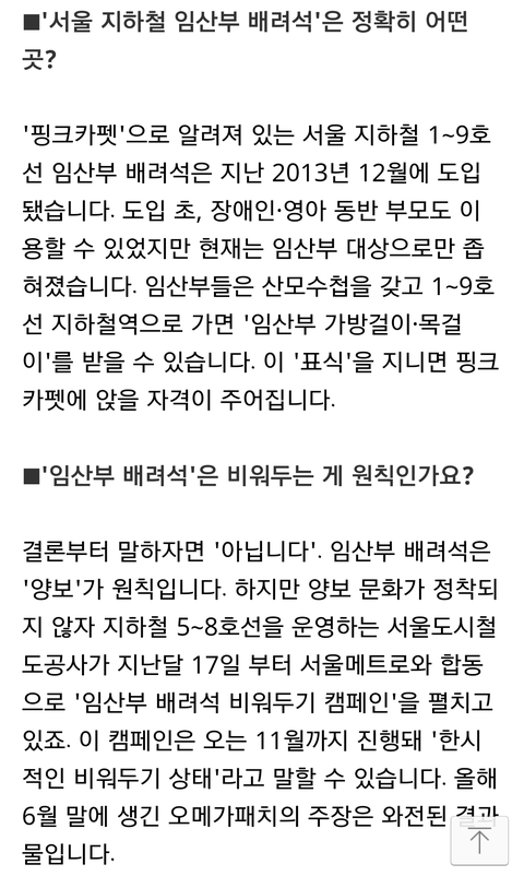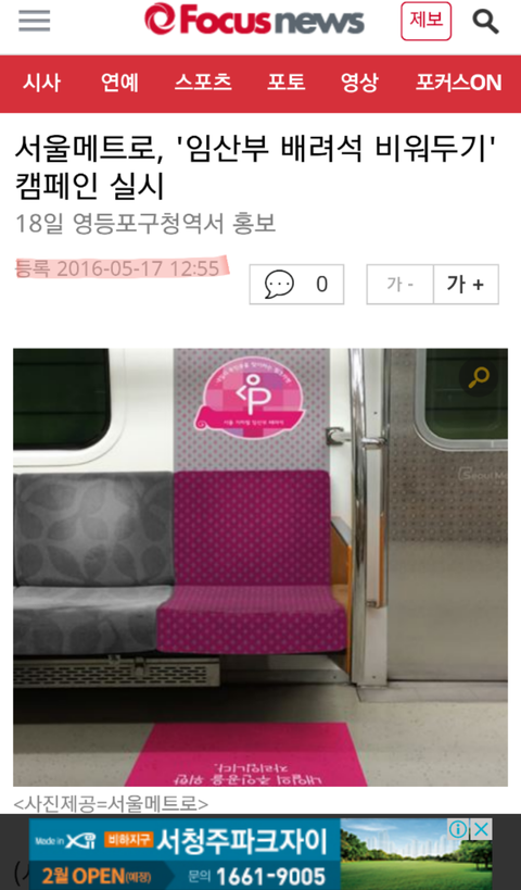 기사에 쓰인 사진은 작년(2016년 2월~4월 추정-어멋날때) 사진이고 "임산부 배려석 비워두기 캠페인"은 2016년 5월달부터 시행된 캠페인.