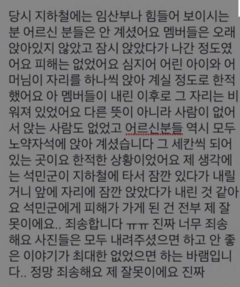 →비워두기 캠페인 당시였다면 앉아있는 것만으로 문제가 됐겠지만 아니라면 이번일은 배려에 대한 관점의 차이지 비난,비판 받을 일이 아님.