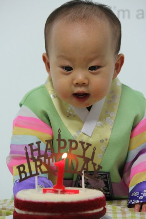 이 어린이가 지난주에 첫 생일을 맞았습니다.