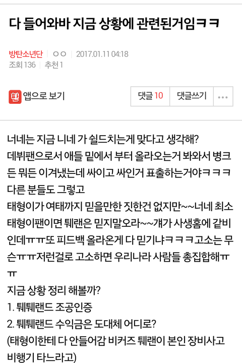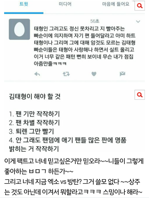 지들끼리 정치질에 선동쩖 중간에 죄없는 태태만 까이고 ㅋㅋㅋㅋ 그냥 무시하면됨