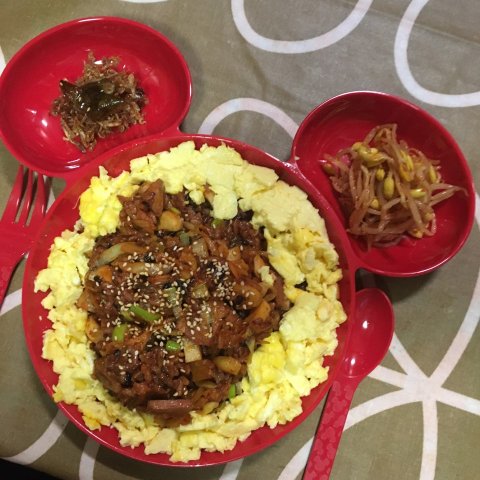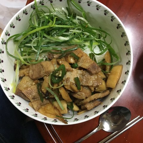 간장소스 삼겹살 덮밥. (누가 만들어 준 요리)