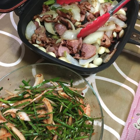 훈제오리에 야채 가득 넣고. 부추 살살 무쳐서 먹으면 진짜 꿀맛.