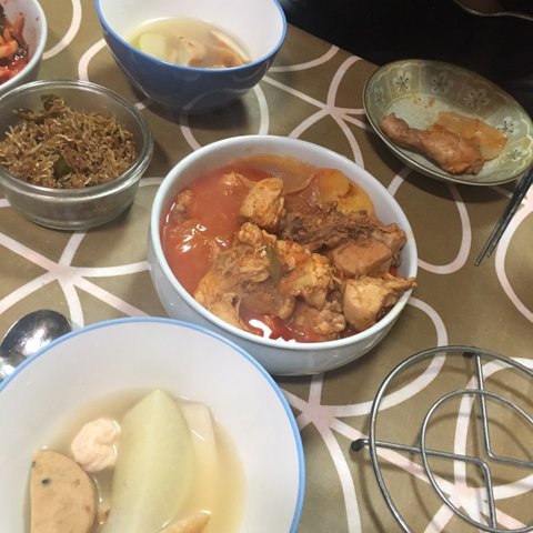 닭도리탕에 어묵국. 꾸르맛..굿.