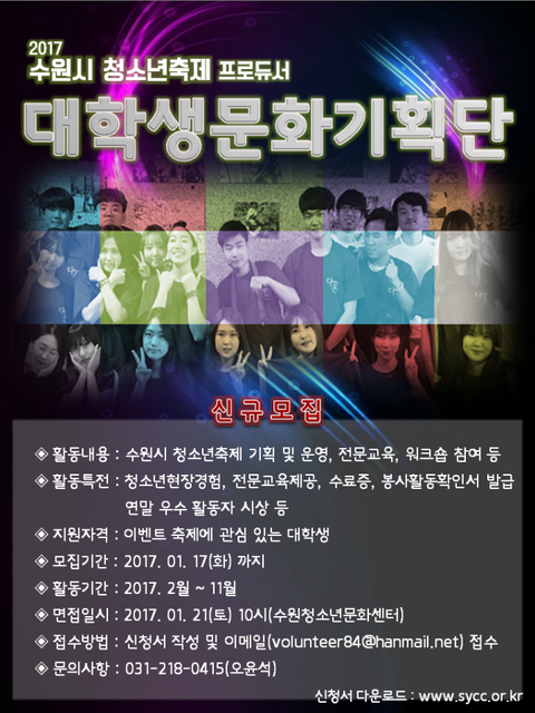 2017 수원청소년문화센터 대학생 문화기획단 모집합니다~~