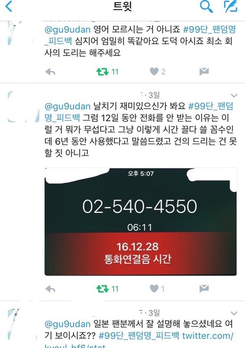 병크 터진 다음날부터 각국의 보이프렌드팬은 자기의 언어로 이메일,전화,트위터,멘션 #99단_팬덤명_피드백 요청하였지만 전부 싹다 무시!!