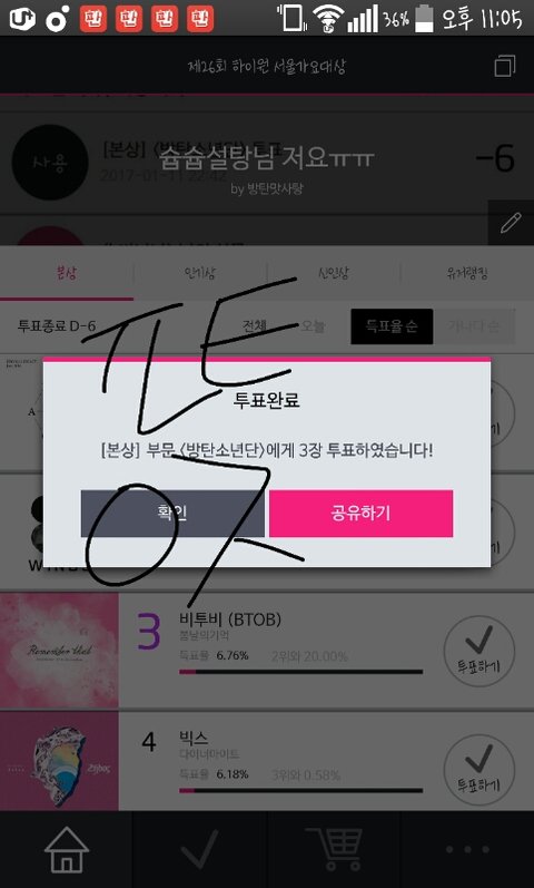 오늘 오전에 이삐들 인증할거 많아도 컴백땜에 흥분해서 글 많았는데 어제 병1크로 톡선 도배+어그로가 판을침+인증 서2232가111대 하나 늘어나서 귀찮음때문에 분위기 적적하고 글이 안올라오는듯...하ㅠㅠㅠㅠㅠ나도 투표나 하러갈래