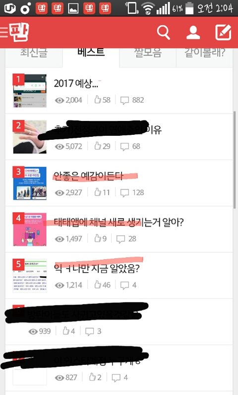 정화반 재모집~~!~!~!~!!~~! 베플 밀건데 화력 딸려서ㅠㅠㅠㅠ 이삐들 투표하는거 아는데 컴폰 동시접속이삐나 몇몇이삐들만 잠깐 와서 정화 좀 도와줘. 글 추천 눌러주고 검은색으로 가린글들은 들어가지말고. 지금은 3위글 밀고있는데 4,5위도 같이 추천+댓글+조회수 반복해줘!