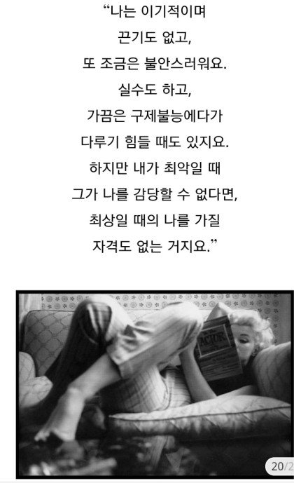 뭔가 마릴린먼로같지않음? 설리 성격이나 가치관(?) 논란 이런걸 떠나서 먼로도 애정결핍이나 그당시 섹스심벌이였지만 대중들한테는 천박해보이기까지했다고함 근데 알고보면 책을 많이읽었고 백치미는 설정이었다고하는데 설리 인스타보면 책구절같은거나 책읽는모습, 나름 내용있는 영화 캡쳐본도 올리고 섹스심벌?;;.. 까진 아니지만 아이돌 전례에없었던 개방적인 모습? 자극적 사진으로 ㅅㅅ어필을 하는 특이케이스이기도하고... 마릴린 먼로의 인생도 불행했었고 인스타로 관심좀 주세요라며 발버둥치는거같기도 하고 논란됬던 술먹고 손목 5센치 그어진거..; 그런거 보면 조카 마이웨이 인생, 말괄량이인 삶을 보여주기식으로 보여주는 그런 설리 인생이 마냥 행복하진않을듯함. 논란되고 까이고 그러는거보면 비슷한거같음 세기의 미인이랑 비교하자(당연히 마릴린먼로가;;;) 이런건아님 그냥그렇다구^.^