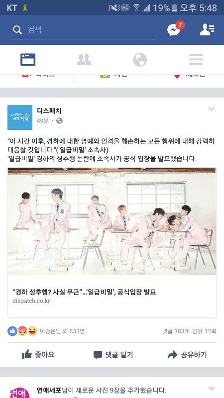 사실 무근이래 소속사 노답이자내 별명 아다 폭격기 ㅠㅠ