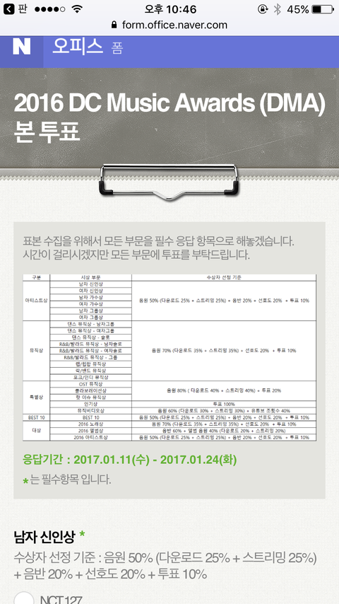 이건 먼 시상식이야 또..ㅋㅋ 네이버폼으로 선정을하네
