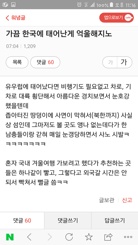 위 글은 워마드 라는 일베충과 비슷한 수준인 다음카페의 한 글인데요.
