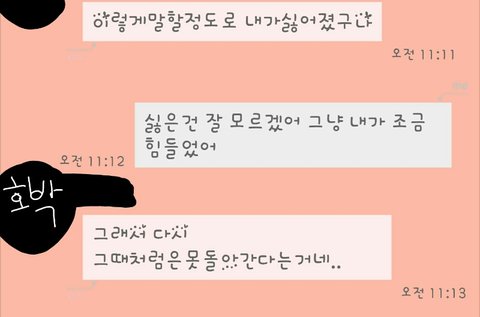제가 그렇게 말한 후 다신 얼굴도보지말고 연락도 하지않겠다고 했던 호박이에게 일주일후 카톡이왔습니다