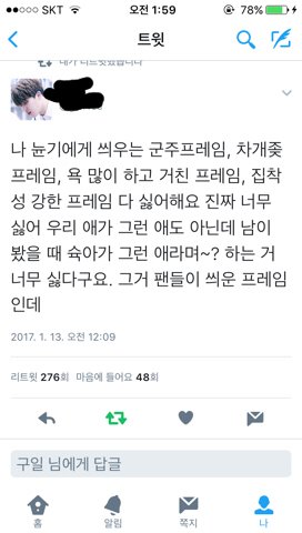 너무 속상하다 팬들이 씌운 프레임때문에 모두들한테 그런 이미지로 굳는게,, 나만 불편했니,, 그 차를 개 ㅈ같이 대놨네 그것도ㅠㅠ솔직히 좀 그래..
