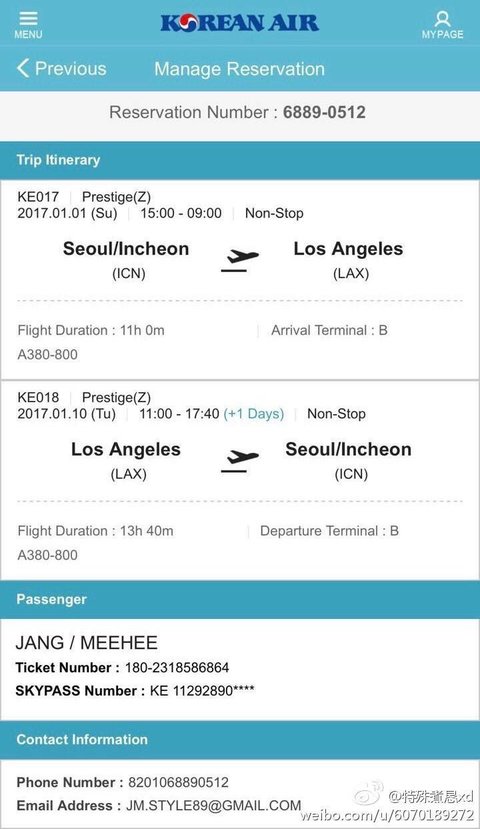 미히가 예약한 비행기