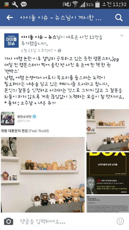 얼굴책에 뜬건데 남준이 여혐있잖아