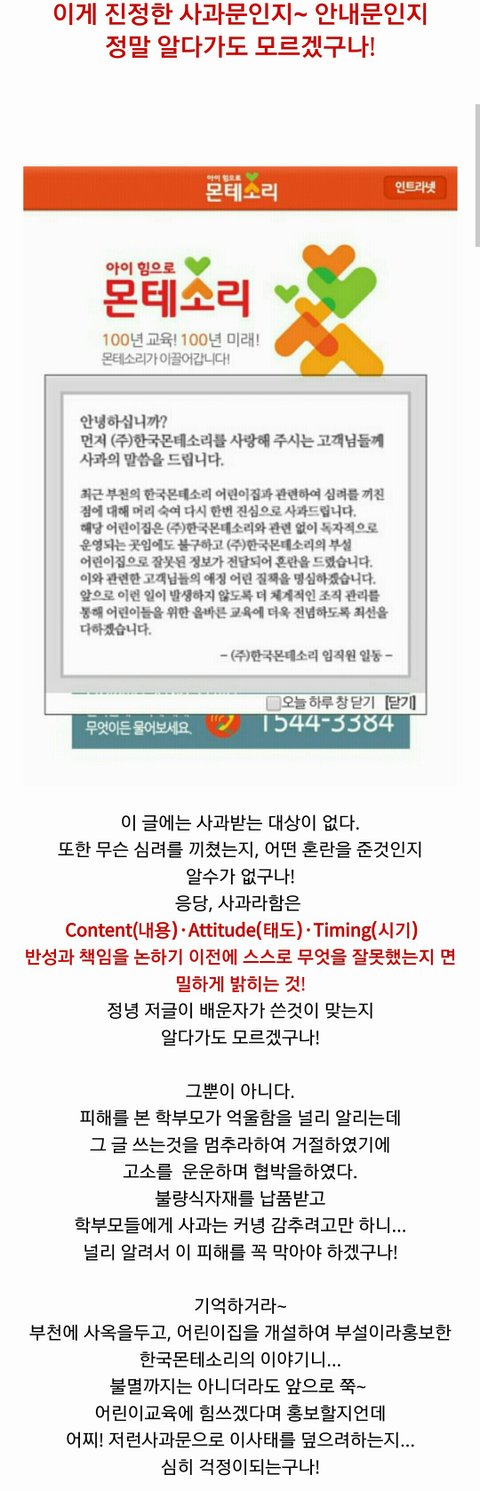 아래 링크로 들어가시면, 왜 몬테소리본사에서 저런 사과문을 써야했는지 알수있어요.