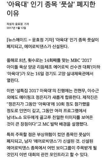 풋살 폐지하고 에어로빅댄스 신설 됐대..ㅋㅋㅋ