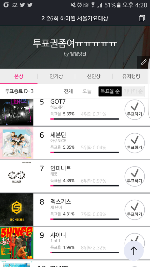 투표방법 모르겠으면 지금이라도 물어보구ㅠㅠ