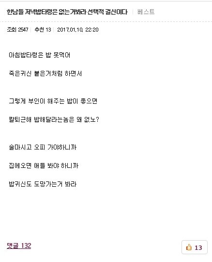 1. 아침차려달라는 한국 가장을 거지취급함.