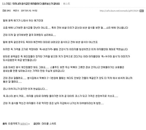 이종카페에서 여자들이 남자들 돈으로 비싼밥 먹는거 뭐라고 했다고 까고있지?????