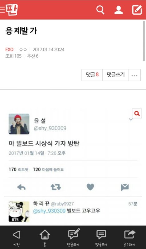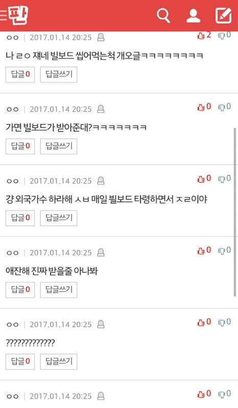 니네 팬톡에서 타가수 타팬덤 엄청 까더랔ㅋㅋ 굳이 니네 가수 욕안해도 아무사이트나 다 가서 캡해서 지네끼리 돌려까고있고 ㅋㅋㅋㅋ