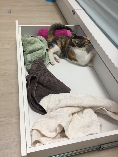 부모님 집에서 무럭무럭 잘 크고 난 후 오니 저희 집 와서 서랍장을 스스로 열고 들어가네요...ㅠㅠ