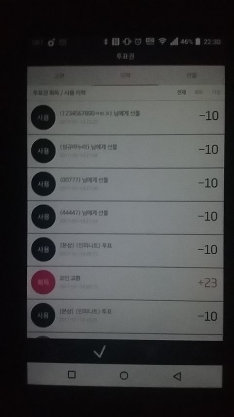 닉네임 인슾짱 한테 보내줘라 그럼 내가 계정만들어서 받은 투표권 새로만든 계정으로 선물할께!