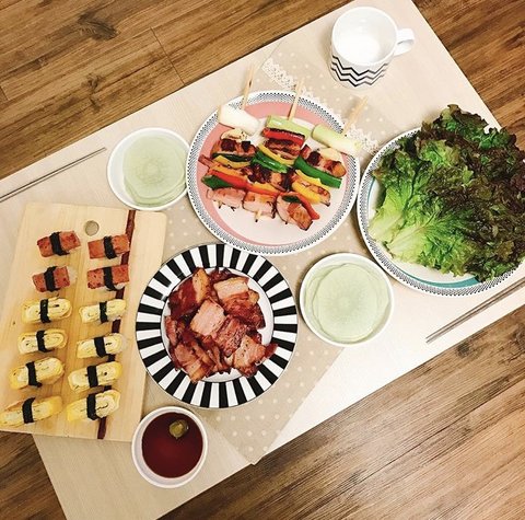 계란초밥 스팸초밥 삼겹살꼬치구이 훈제삼겹살